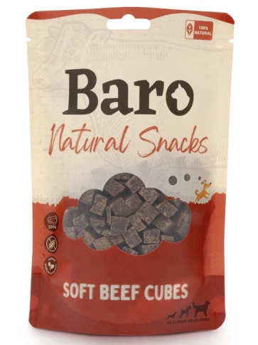 Baro Natural Snacks, mekane kocke s govedinom su prirodne grickalice za pse s monoproteinskim receptom i sadrže 100% svježeg goveđeg mišićnog mesa.