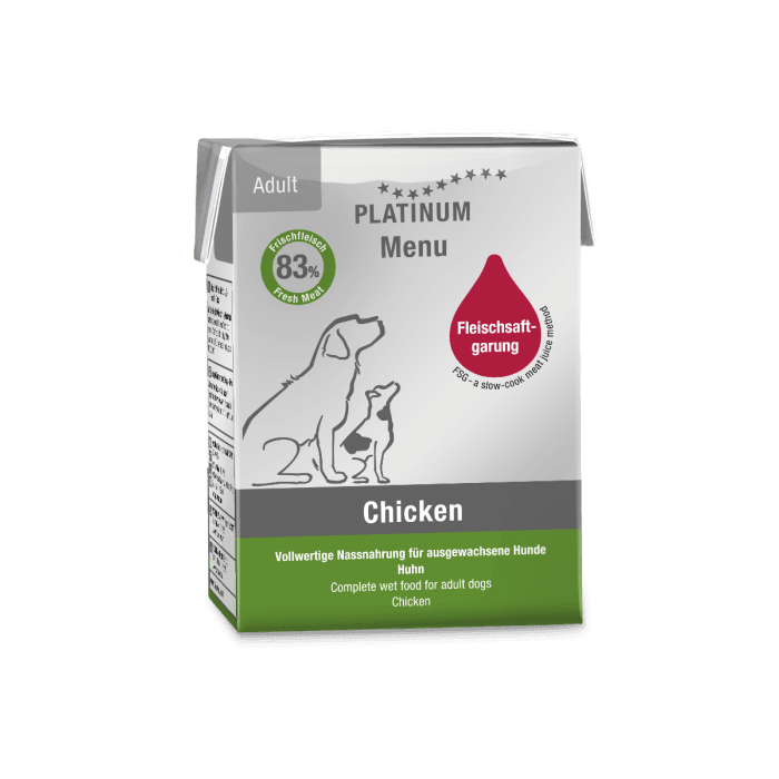 Platinum Menu piletina je potpuna mokra hrana za odrasle pse svih pasmina. Zbog prirodnih sastojaka i zdravog sastava vrlo je lagana za probavu tvog ljubimca. Platinum hrana napravljena je bez dodataka, umjetnih okusa, boja i mirisa ili pojačivača okusa.
